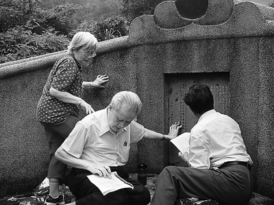 2005年,麦英豪(中)与夫人黎金(左)参加广州市第四次文物普查。