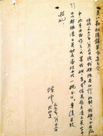 由政府接济生活有困难的革命家属,是很正常的事情,但陈云不因此而违背他的原则,而且终其一生始终坚持。20年后的1972年8月,陈云亲自写信给吴江县松陵镇革命委员会,代姐姐陈星做主,将其财产“一概交公”。