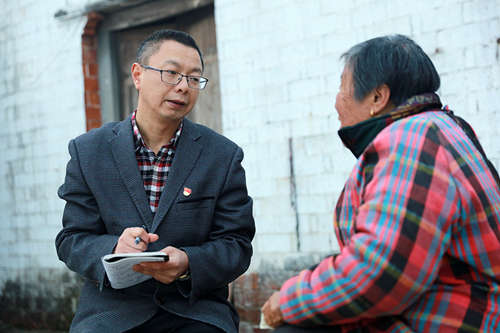 图为冯大宏(左)在基层走访。盛义摄(资料图)